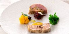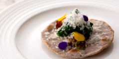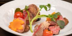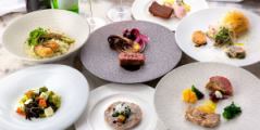 メニュー(一例) | 三陸産の魚介と地元野菜を使った前菜 / 熟成牛のロースト など |