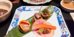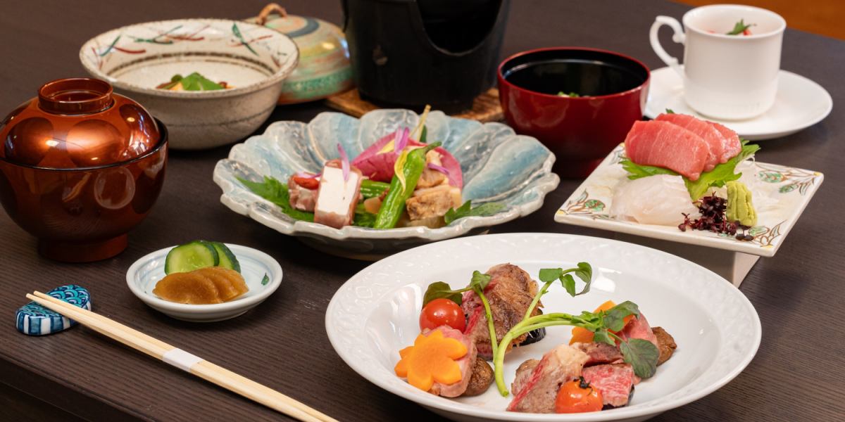 献立(一例) | 仙台牛ステーキ 特製味噌だれで / 牛ほほ肉のとろとろ煮 / いわい鶏の味噌豆乳鍋 / 旬の前菜 / お造り / 煮物 / 甘味 など |